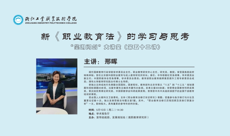 “鉴湖问剑”大讲堂(第五十二讲):新《职业教育法》的学习与思考