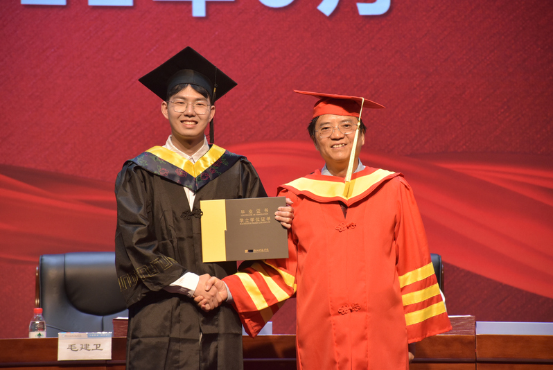 毛建卫叮咛全体毕业生:要铭记父母的养育之恩,铭记母校的栽培之恩和师长的教诲之恩,感恩党和祖国为我们提供的安宁幸福生活。希望同学们牢记“明德敬业,知行合一”的校训和“艰苦奋斗、自强不息”的浙im体育 精神,再创人生新的辉煌。