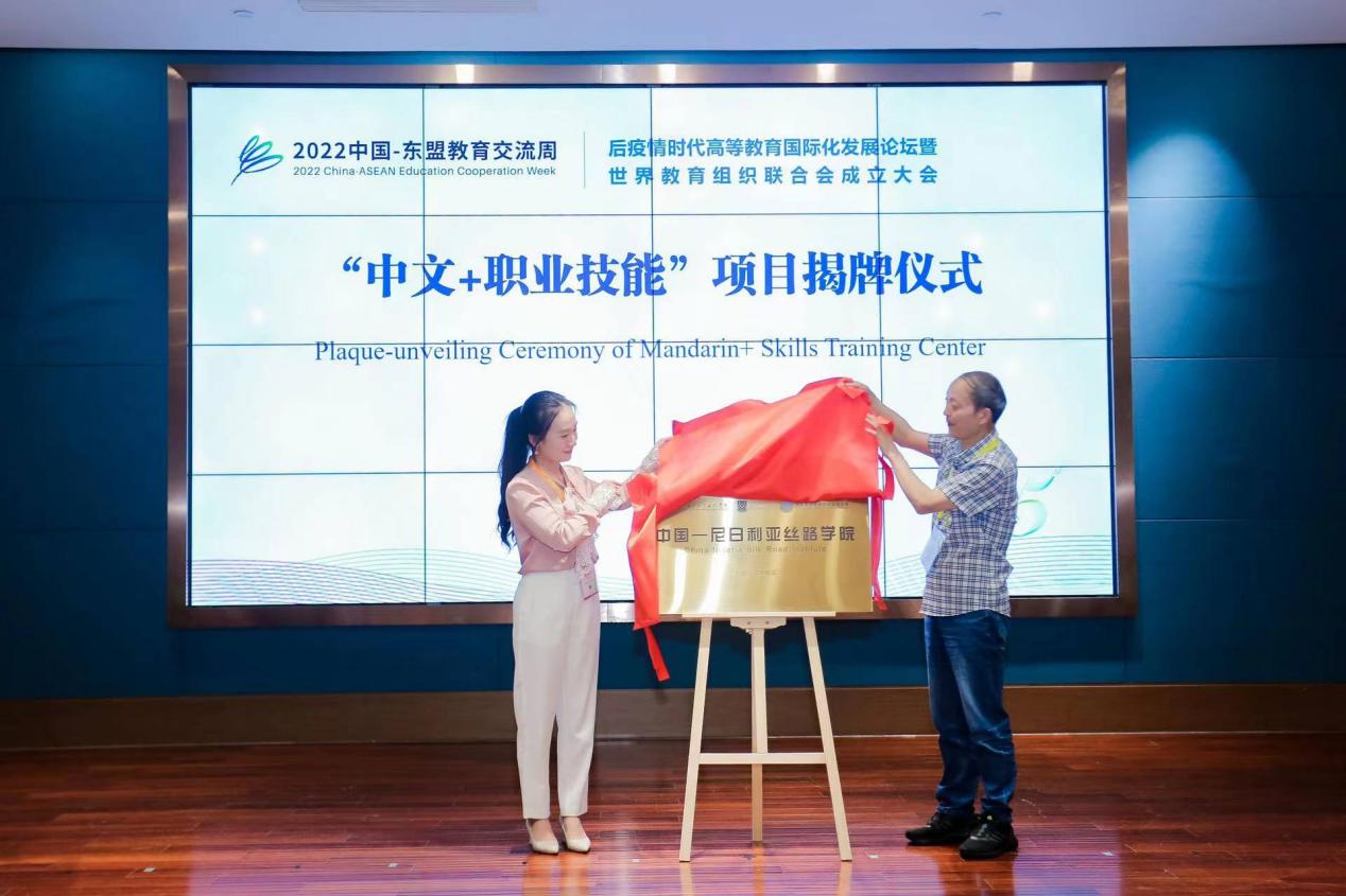 823日,学校首个“丝路学院”——“中国-尼日利亚丝路学院”在第15届中国-东盟教育交流周(贵阳)平行论坛暨世界教育组织联合会成立大会上揭牌成立。学校党委委员、副校长骆文炎,国际交流与合作处处长朱金芳,马来西亚国际文化交流中心中国区总经理周晋、尼日利亚埃邦伊州立大学校长希戈齐·恩格沃尔·奥格布(Chigozie Nkwor Ogbu Ogbu)及相关人员线上线下共同参加揭牌仪式。
